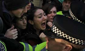 indignados durante el desalojo por la fuerza de Trafalgar Square, en