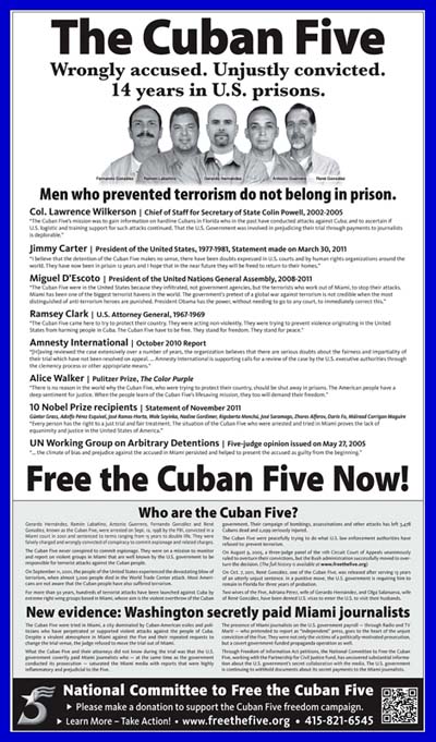 los Cinco y se condena la actuación del gobierno de EE.UU. La publicación fue colocada por el Comité Nacional para