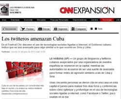 despacho de AP bajo el título "Twitteros amenazan Cuba" que se hace