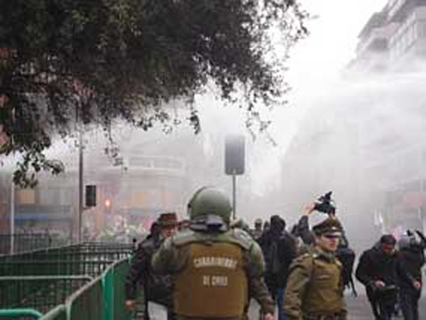 policía de Carabineros de Chile reprimió hoy una manifestación de