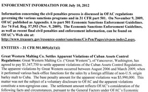 por permitir la venta de cebada a Cuba entre agosto de 2006 y marzo