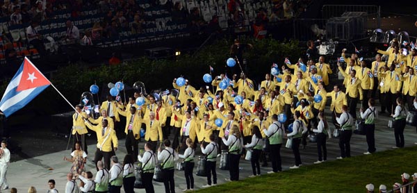 Y en medio de todo ello, el desfile de los atletas, con Cuba que