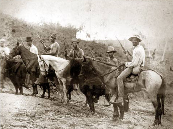 Componen la exposición escenas históricas de campamentos mambises,