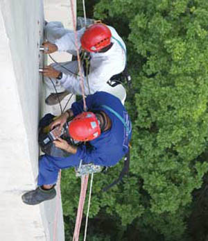 Los reparadores, dijo, utilizan mayas contra caídas, así como