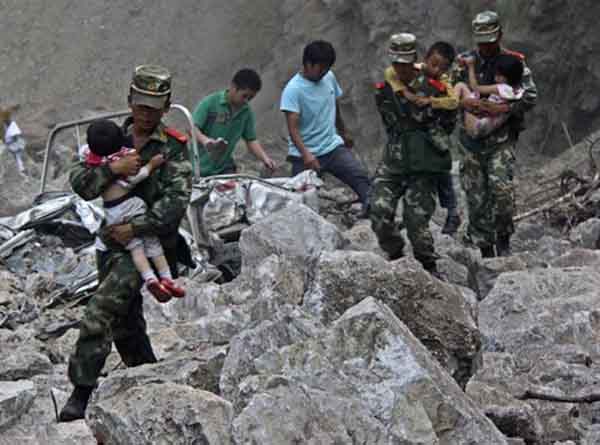Guizhou y Sichuan. Los terremotos provocaron desprendimientos de