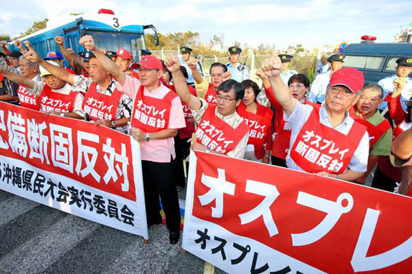 autoridades y pobladores de Okinawa exijan la retirada de las bases