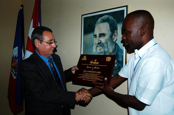Edouard presenta la placa al embajador cubano en Haití Ricardo