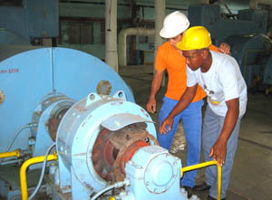 y Félix, dos de los operarios de la planta eléctrica, velan por la
