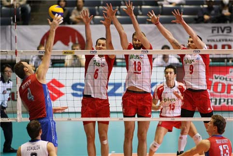 el opuesto Maxim Mikhaylov, el pasador Sergey Grankin y el capitán