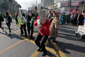 frente al Parlamento para protestar contra la política de Piñera y