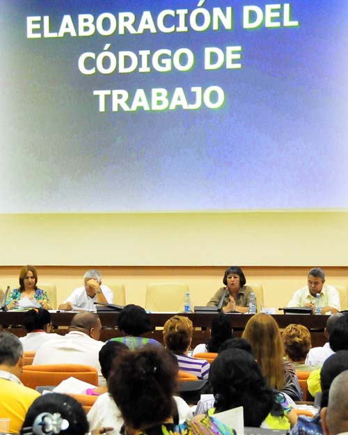 con los trabajadores el Anteproyecto de Código de Trabajo, según se