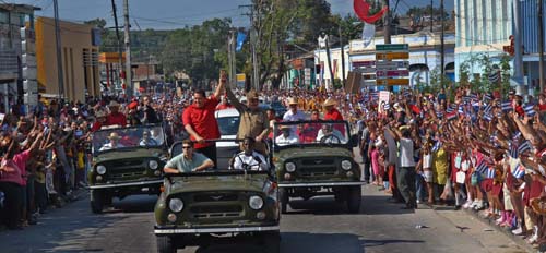 se va", "Chávez te queremos", y él reciprocando "Si Cienfuegos son