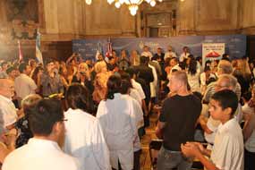El espacioso Salón Azul de la casa legislativa se llenó del