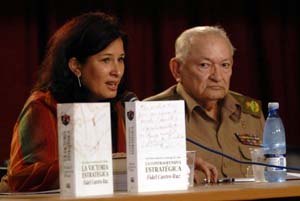 Estos volúmenes, afirmó, son un regalo para los jóvenes, quienes, podrán acercarse a un intenso período de lucha librada en la Sierra Maestra por el Ejército Rebelde para derrotar a la tiranía, y que demostró la capacidad humana y como estratega del máximo líder de la Revolución. Cada texto, agregó, es un material imprescindible para el estudio y conocimiento de la historia nacional, narrados desde la vivencia de su autor, el principal impulsor y creador de una guerrilla que venció a las fuerzas del dictador Fulgencio Batista, varias veces superior en hombres y armas. En el complejo Morro Cabaña y en el contexto de la XX Feria Internacional del Libro Cuba 2011, García Frías evocó pasajes de la guerra que demostraron la fe inquebrantable de Fidel en la victoria definitiva Aún en las condiciones más difíciles, como las posteriores al desembarco del yate Granma hasta su unión con Raúl Castro en Cinco Palmas, el Comandante en Jefe nunca dejó de hablar y pensar en el triunfo, puntualizó. Eugenio Suárez, director de la Oficina de Asuntos Históricos del Consejo de Estado, apuntó que "La victoria estratégica" se edita en China, Vietnam, Rusia, Alemania y Francia, y la editorial Ocean Press presentó recientemente una tirada que circula en varios países latinoamericanos. Sobre este tema, Katiuska Blanco, editora del volumen, añadió que estas nuevas ediciones salen al mercado revisadas y enriquecidas con datos y apuntes del propio Comandante en Jefe. La primera presentación de "La victoria estratégica" aconteció en agosto de 2010, mientras "La contraofensiva estratégica" vio la luz en septiembre. |