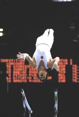 saltos y barra fija) y una bronce en suelo, en total ocho medallas.