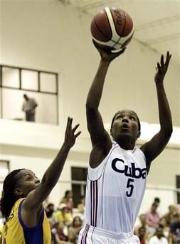 Taimara Suero y Leidis Oquendo, dos de las basquetbolistas cubanas.. Cuba va a la final frente a Puerto Rico en el baloncesto femenino. Fotos: AP
