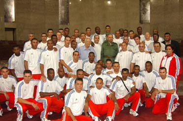 Durante cerca de dos horas, el Jefe de la Revolución compartió en un ambiente fraternal con los peloteros, el colectivo técnico, la dirección del INDER y la prensa nacional que cubrirá el importante evento deportivo e indagó numerosos detalles de la preparación, de la composición de nuestro equipo y de las selecciones contrarias, de las características de los estadios techados y el césped artificial, del calendario del torneo, de las transmisiones televisivas, de la continuación de nuestra Serie Nacional y otros temas. Se interesó especialmente en las reglamentaciones especiales para el pitcheo y preguntó sobre cómo se habían preparado nuestros lanzadores para ese reto. Fidel rememoró su afición por el deporte desde niño y recordó algunas anécdotas de sus experiencias como lanzador y jardinero. Entonces se jugaba en los centrales azucareros y solo se conocía a los jugadores en los 3 kilómetros a la redonda, dijo. Comprendo por eso lo que significa que ustedes sean conocidos en el mundo entero y que nuestro país sea reconocido en todas partes —señaló. "Este es un país con honor y un país respetado, porque ha sabido luchar con coraje y dignidad". Comentó el Comandante en Jefe que este sería el torneo más duro que hayamos enfrentado y nuestro pueblo estaba consciente de ello; pero, a la vez, hay mucha confianza en la calidad y la entrega de nuestros peloteros: "Confiamos en la calidad de ustedes, en el honor de ustedes, en la firmeza de ustedes". Recordó la formidable actuación de nuestro equipo contra los Orioles de Baltimore y alentó a la selección actual a entregarlo todo en el terreno. "Los despido con las palabras del Che ¡Hasta la victoria siempre!" —concluyó Fidel su mensaje al Equipo Nacional de Béisbol que partirá en la mañana de hoy rumbo a San Juan, Puerto Rico, sede de nuestro grupo clasificatorio. El primer compromiso de Cuba tendrá lugar el miércoles 8 de marzo a las 2:00 p.m., frente a la selección de Panamá. ABANDERAMIENTO DE LA DELEGACIÓN La delegación que nos representará en el I Clásico Mundial fue abanderada ayer por Esteban Lazo Hernández, miembro del Buró Político del Partido, en la base del monumento a José Martí, de la Plaza de la Revolución. En el inicio de la ceremonia, Osmany Urrutia y Carlos A. Tabares, en representación e sus compañeros, colocaron una ofrenda floral ante la efigie de nuestro Héroe Nacional. A continuación, Eduardo Paret, capitán del equipo, escoltado por Michel Enríquez y Ariel Pestano, recibió la Enseña patria de manos de Lazo. Yulieski Gourriel leyó el Juramento de los peloteros y recalcó que lo darán todo en el terreno de juego, convencidos de estar apoyados por más de 11 millones de cubanos. En las palabras finales, Christian Jiménez, presidente del INDER, elogió la preparación de la Selección Nacional, labor en la que participaron atletas, entrenadores y especialistas, guiados por una gran disciplina. (Alfonso Nacianceno)6 de marzo de 2006