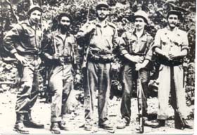 Al cabo de unas tres horas, habíamos avanzado tierra adentro unos 300 ó 400 metros, cuando empezamos a sentir firme bajo la planta de nuestros pies, hierba más abundante y espacios más despejados. Al fin estábamos rebasando el mangle. Fue en esos momentos que sentimos a nuestras espaldas, en dirección a la costa que habíamos dejado atrás, un disparo seguido de otros más. Un guardacostas de la Marina de Guerra divisó la nave varada y le tiraba, buscando se le respondiese al fuego. Enseguida llegó un avión militar y dimos orden al personal de desplegarse y ocultarse en la maleza. Conviene aclarar que ni el guardacostas, ni el avión nunca nos divisaron, menos localizarnos, pero rabiosos por la pifia de no haber podido impedir nuestro arribo a playas de Oriente, ensayaron una batallita, como para quedar bien. Así fue como empezó el bombardeo y ametrallamiento en toda regla, a lo largo y ancho de la zona de desembarco¼ Llegaban a vuelo rasante rociando metralla sobre el manglar —al borde del cual nos encontrábamos— y soltando bombas sobre la línea de la costa. Así estuvieron cerca de media hora, hasta que nosotros aprovechando un largo paréntesis de calma, reagrupamos nuestras unidades, un tanto confundidas después de la salida del manglar. Se recontó rápidamente el personal y notamos la ausencia de Juan Manuel Márquez y ocho compañeros más. Como la consigna era avanzar y llegar a la Sierra en el menor tiempo posible, se ordenó marchar y a paso ligero. Así comenzó a moverse la columna: barbudos, llenos de lodo, extenuados hasta el máximo pero con el fusil fuertemente apretado en nuestras manos. La lección aprendida en los campos de entrenamiento en México nos la sabíamos, no hubo pánico, ni miedo, si acaso nerviosismo, pues para muchos era la primera vez que oímos fuera de la sala de un cine, roncar a los aviones, disparando bombas y metralla. Dadas las precarias condiciones físicas en que nos encontrábamos todos, se veía claro y era evidente que no podíamos llegar muy lejos. No teníamos noción del lugar en donde nos encontrábamos. Por lo pronto no se observaban montañas, en todo lo que la vista muestra y la espesura que nos rodeaba, permitían ver. Pasamos junto a un bohío abandonado y la vanguardia topó con un solitario campesino que a pesar del miedo que tenía, debido a las bombas, se ofreció para sacarnos rápidamente del lugar. Con él de guía se avanzó un largo trecho y ya supimos dónde nos hallábamos.