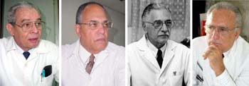 Algunos de los iniciadores de trasplantes renales en Cuba. De izquierda a derecha Jorge Alfonzo, Sergio Arce, Reynaldo Mañalich y Charles Magrans. |