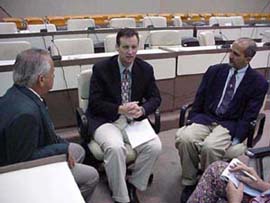 al centro de la foto, cuando intercambiaba criterios con el doctor