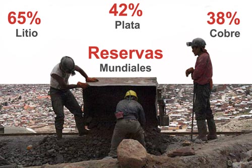 reservas mundiales de litio, 42 % de plata, 38 % de cobre, 33 % de