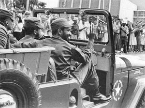 Jefe del Ejército Rebelde, abría el desfile en un yipi.