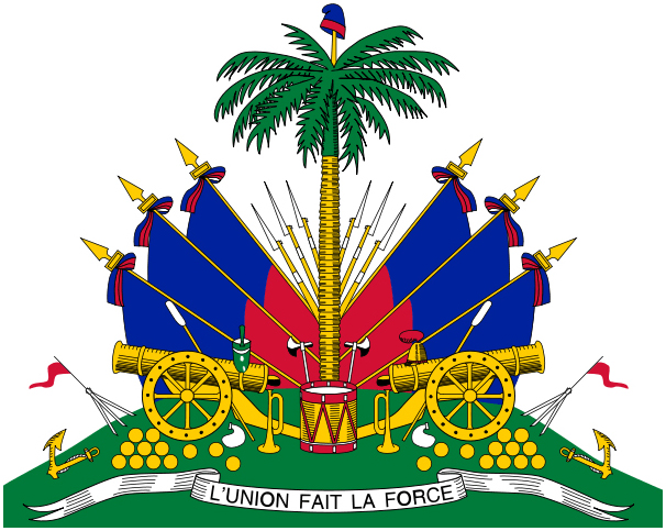 El emblema de Haití figura igualmente en el centro de la bandera de Haití, donde queda representado sobre un rectángulo blanco.