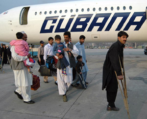 Parten hacia Cuba víctimas del terremoto en Pakistán Regresan los primeros médicos cubanos que acudieron a prestar la ayuda solidaria Juvenal Balán: Texto y fotos, Enviado especial de Granma Un pequeño grupo de seis niños, dos muchachas y seis hombres, víctimas del terremoto del pasado 8 de octubre en Paquistán, partieron a bordo de un IL-62 de Cubana de Aviación hacia Cuba con el objetivo de recibir una prótesis y concluir el tratamiento de rehabilitación comenzado en hospitales de campaña cubanos ubicados en la zona del desastre, en el norte del país.