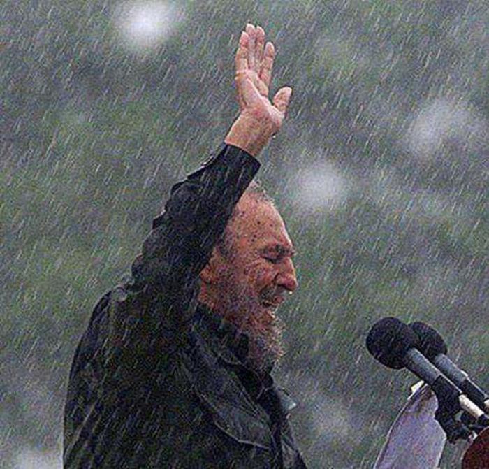 Recuerdo la última tribuna abierta que realizó en Holguín, bajo un fuerte aguacero. Lo vi, firme, de frente, con su voz segura, sin lamentarse, como siempre. Yo estaba allí mirándolo y compartiendo con él la bendición de la naturaleza, estaba allí, solo él podía paralizar a la multitud que no corrió a resguardarse de la lluvia. Desde la noche anterior estuve de vigilia. Él personalmente lo agradeció al final... todavía recuerdo sus palabras, esas que llegaron hondo y que resuenan como campanas desde aquel entonces... Con toda su humildad y grandeza solo dijo, GRACIAS, no hizo falta más.