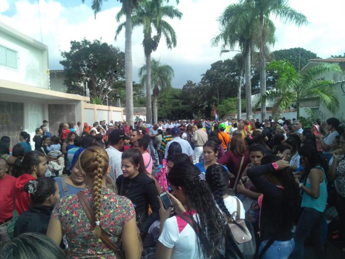 Hace tres días, con el amanecer caraqueño empieza a llegar la gente, y en poco tiempo la calle de la sede diplomática es un hervidero pujante por entrar.