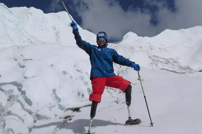 CHINO CON DOBLE AMPUTACIÓN DE PIERNAS ESCALA EL MÍTICO MONTE EVEREST