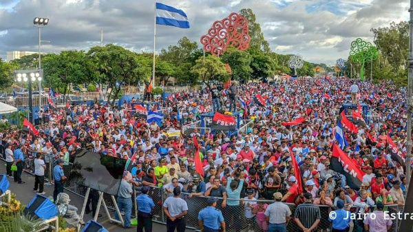 Las consignas «Daniel se queda» resonaron al unísono por los participantes de la marcha en defensa de la soberanía, la paz y la libertad de Nicaragua. El pueblo nicaragüense marchó este jueves en defensa de la paz de ese país y en rechazo al intento golpista contra el mandatario Daniel Ortega. Los asistentes a la manifestación abarrotaron las calles y avenidas de Managua, capital del país centroamericano. A propósito, el gobierno de Daniel Ortega reiteró que el golpe de Estado fallido, iniciado el pasado 23 de mayo, fue perpetrado por mentes y financiamiento estadounidense. (Telesur)