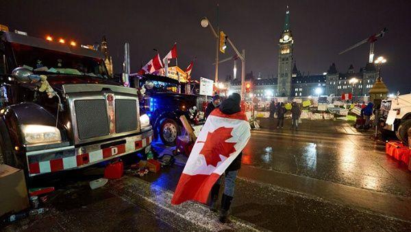 El primer ministro de Canadá, Justin Trudeau, convocó a un gabinete de crisis para tratar las protestas del movimiento antivacunas, que ha bloqueado la capital y la frontera con ee. uu. La convocatoria es una señal de la gravedad de la crisis que se inició hace casi dos semanas, cuando la capital canadiense, Ottawa, fue ocupada por una caravana de camioneros opuestos a la vacunación de conductores comerciales que cruzan la frontera con ee. uu. Alrededor de 400 camiones y varios centenares de manifestantes mantienen bloqueadas las calles que rodean el Parlamento canadiense. Los manifestantes, que bloqueaban el tráfico hacia el puente Ambassador de Windsor, Ontario, acordaron despejar un carril el viernes, lo que permitió que algo de flujo de tráfico saliera del puente hacia Canadá. (Telesur)