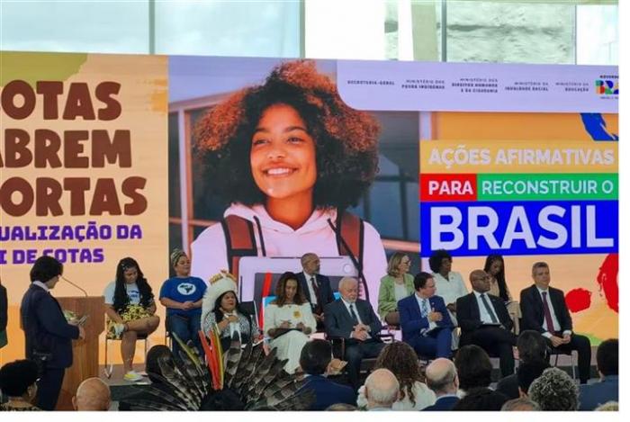 El presidente Luiz Inácio Lula da Silva homologó la llamada Ley de Cuotas, que actualiza la legislación para estudiantes que ingresan en las universidades de Brasil. Aprobado en octubre último, en el Congreso Nacional, el programa, con vigencia de diez años, tiene como requisito previo la reserva de plazas para alumnos egresados de establecimientos docentes públicos, en especial negros, mestizos, indígenas y discapacitados. Figuran entre las modificaciones de la nueva iniciativa el cambio del mecanismo de ingreso a la Educación Superior federal, la reducción de la renta familiar para reservas de plazas, y la inclusión de estudiantes afrobrasileños como beneficiarios. (PL)