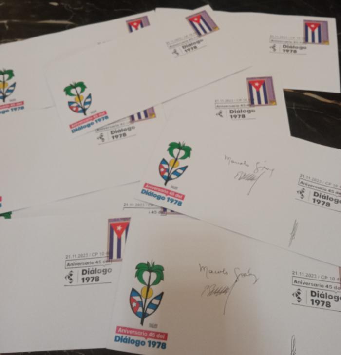 La cancelación rememorativa de un sello postal en saludo al aniversario 45 de los diálogos sostenidos con los cubanos residentes en el exterior, ocurrió este martes en la sede de la cancillería en La Habana. Carlos Fernández de Cossío, viceministro de Relaciones Exteriores, destacó el compromiso y la determinación de aquellos jóvenes que visitaron su país, en 1978, para transformar la naturaleza de las relaciones comunes entre el lugar de nacimiento y el de residencia. «Honramos con este acto la memoria de Carlos Muñiz Varela y de Eulalio Negrín Santos, mártires de la ofensiva terrorista que formó parte de la contrarrevolución en impedir los contactos y de obstaculizar la relación de los cubanos residentes en Estados Unidos con la patria que los vio nacer», afirmó Fernández de Cossío. (Nuria Barbosa León)