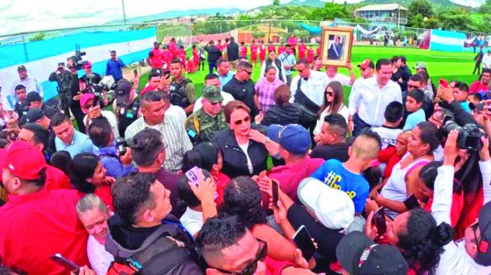 La presidenta hondureña Xiomara Castro ratificó que su Gobierno es del pueblo y que, pese a las complejas circunstancias por las que atraviesa el país ante el injerencismo de EE. UU., continuará defendiendo su voluntad. Durante la inauguración de una cancha de fútbol sintética, en el popular barrio La Villanueva, la Jefa de Estado manifestó que seguirá trabajando para cumplir la palabra empeñada durante la campaña a la presidencia, y para no fallar al pueblo hondureño. (Telesur)