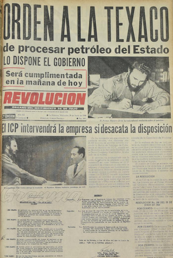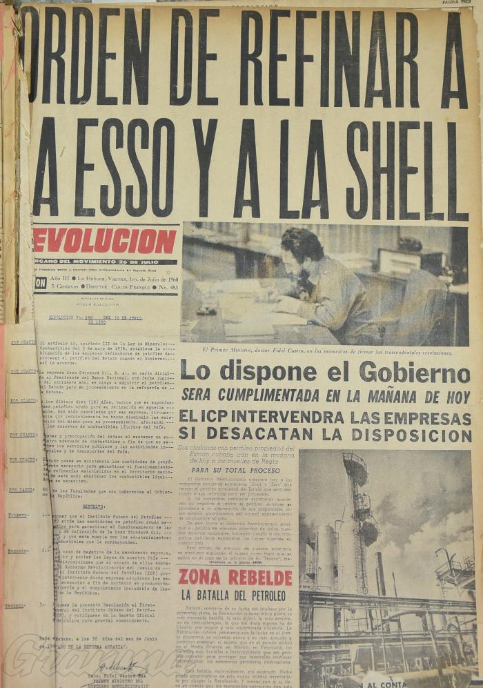 De igual forma se actuó el 1 de julio con las refinerías Shell, y Esso en La Habana, al notificárseles las Resoluciones 189 y 190 respectivamente. Y ante la negativa de refinar el petróleo del Estado cubano, también fueron intervenidas por desacato.