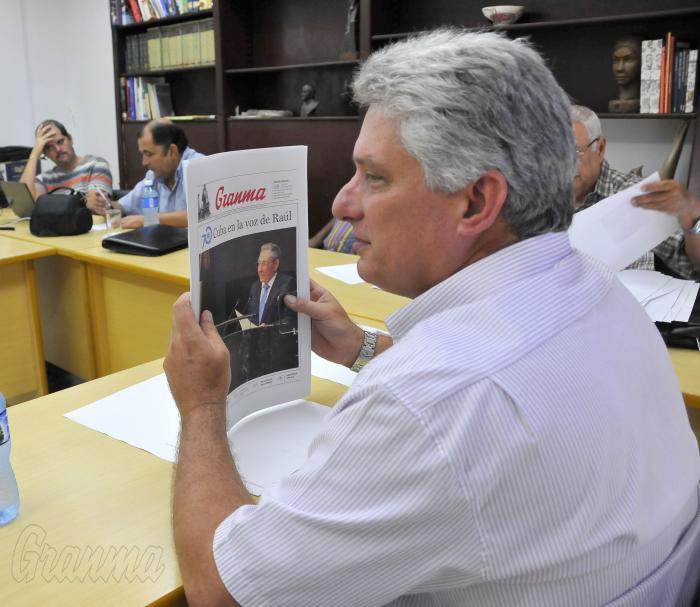 Allí el Comandante en Jefe se reunió con los periodistas y los trabajadores; despidió cariñosamente al compañero Blas Roca como director de Hoy, y presentó al compañero Isidoro Malmierca como director del periódico Granma.