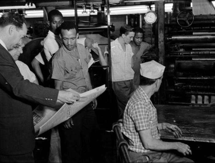 En el cuarto donde se traza el rumbo con su capitán Jorge Enrique Mendoza, con los subdirectores Elio Constantín y Tubal Páez, con el caricaturista René de la Nuez y un grupo de periodistas, Fidel trazaba las pautas a seguir manteniendo el rumbo firme de la Revolución con la información al pueblo como premisa principal.