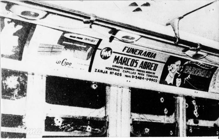 «Las balas entraban por la parte delantera del ómnibus, y me fueron alcanzando en distintas partes. La primera en el muslo, después en ambos brazos, otra en la cabeza, también en las piernas y en la mano.