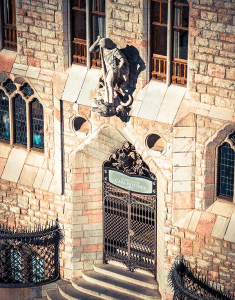 --En 1891 Gaudí se hizo cargo de la construcción de la Casa Botines, en León, y colocó en la entrada principal un conjunto escultórico que representa a San Jorge en plena lucha con un dragón.