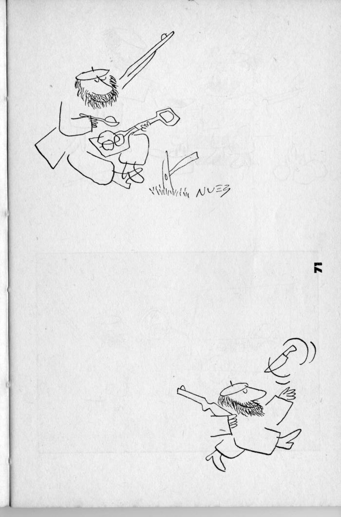 Por aquellos días nuestro amigo y colega, el genial caricaturista René de la Nuez, mostró a su modo, es decir, por medio de dibujos humorísticos la vida en campaña de nuestros milicianos.