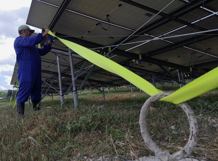 El jefe de Inversiones de la Empresa Eléctrica Holguín, César Luis Sarmiento Ávila, confirmó que sobre los paneles de los parques Corúa, Providencia, La Caridad, Cerones y El Cocal fueron colocadas fuertes cintas, atadas a los cimientos de las mesas.