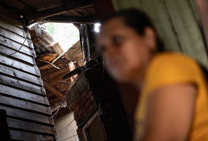 Vamos para la casa de María Antonia, construida hace más de 100 años con tablas «de madera buena» que ahora son el símil de un paciente con cáncer. Por la ausencia de una teja entró el agua y mojó cuanto quiso. Hace un rato, empezó la lluvia y hubo que traer el colchón para la sala. Hoy no se secará. Mañana, tampoco.
