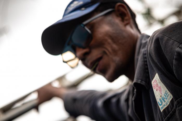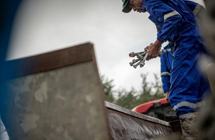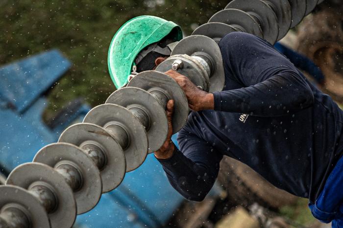 Las gotas tornan los overoles de un azul más oscuro y resbalan por los cascos que cubren las cabezas. A estas horas, se descarga una torre de emergencia.
