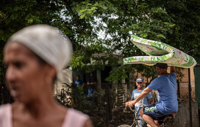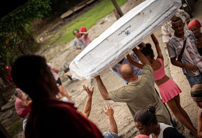Van casa por casa estudiantes de la Universidad de Ciencias Médicas y, a la par, llega un camión cargado de colchones. Ya usted sabe lo que se armará cuando abran esa puerta. Aquí hay quien vino del centro de evacuación porque «si en la casa no había nadie no nos daban».