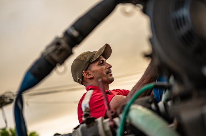 Hemos llegado a Cauto Embarcadero para rellenar la pipa y Alexey, mientras le pasa un «trapo», bromea otra vez con que no es de trabajar, sino de pasear. «Sin embargo, soy el que más trabaja». En estas semanas, si ha dormido «20 horas, son muchas, porque, aunque tenga cinco», solo puede dormir dos y el resto las pasa «desvela´o».