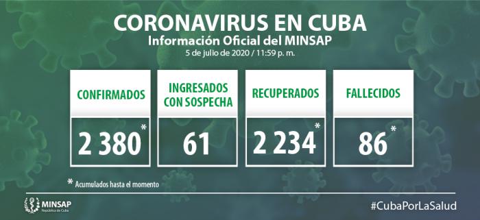 - Ciudadano cubano de 46 años de edad, residente en el municipio Cerro, provincia La Habana. Contacto de caso confirmado anteriormente. Se mantienen en vigilancia 19 contactos.