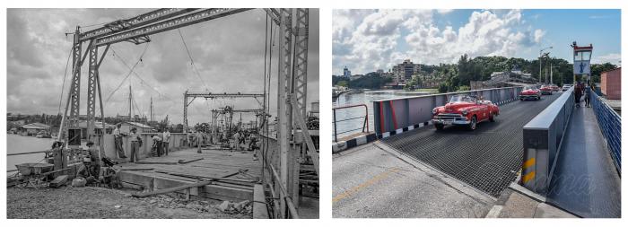 Entre los puentes que cruzan al Almendares en sus últimos kilómetros antes de desembocar al mar, se halla el conocido Puente de Hierro giratorio, que gira para permitir el paso de embarcaciones fluviales, fue totalmente reconstruido hace poco más de un año. Foto: Ariel Cecilio Lemus