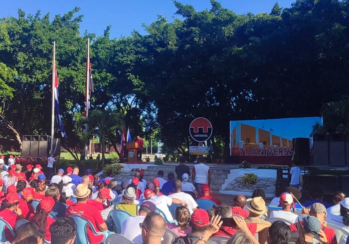 Alexei Prado Prado, primer secretario del Partido en Vertientes, felicitó al pueblo, principal protagonista de la transformación que ha tenido el municipio en los últimos meses. El territorio de mayor cantidad de tierras cultivables de Cuba consolida ocho áreas de desarrollo como Santa Rosa, Los Toros, Santa Justa y el polo productivo El Mayor, con 1 200 hectáreas para sembrar fundamentalmente yuca y plátano, y así poder aportar a toda la provincia. Además, reducen el déficit presupuestario en 31 millones de pesos, sobrecumplen los ingresos cedidos y la recaudación total.